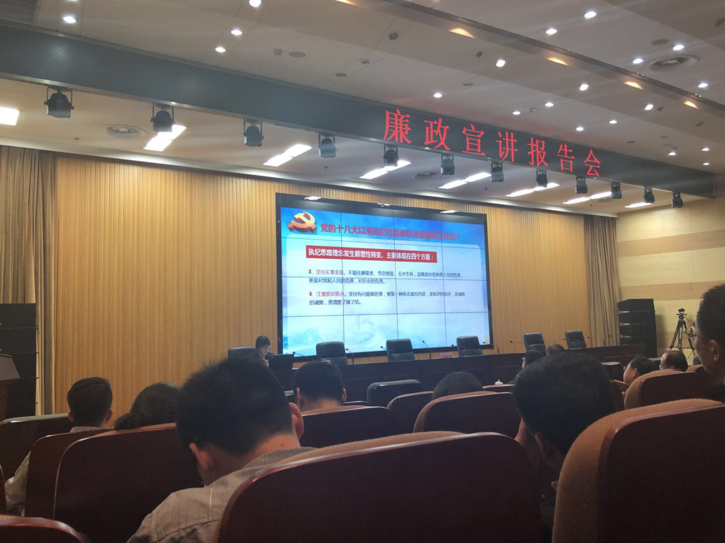 宣讲上,宣讲员金婷从全面从严治党、党风廉政建设和反腐败斗争取得的成效,全面从严治党面临的形势和发展趋势,党的十九大关于全面从严治党的新部署要求,党的十八大以来纪检监察机关是如何工作等四个方面,结合案例及工作中遇到的问题集中开展宣讲,教育引导大家深刻领会把握十九大精神,有力地从传递了“全面从严治党永远在路上”的强烈信号。