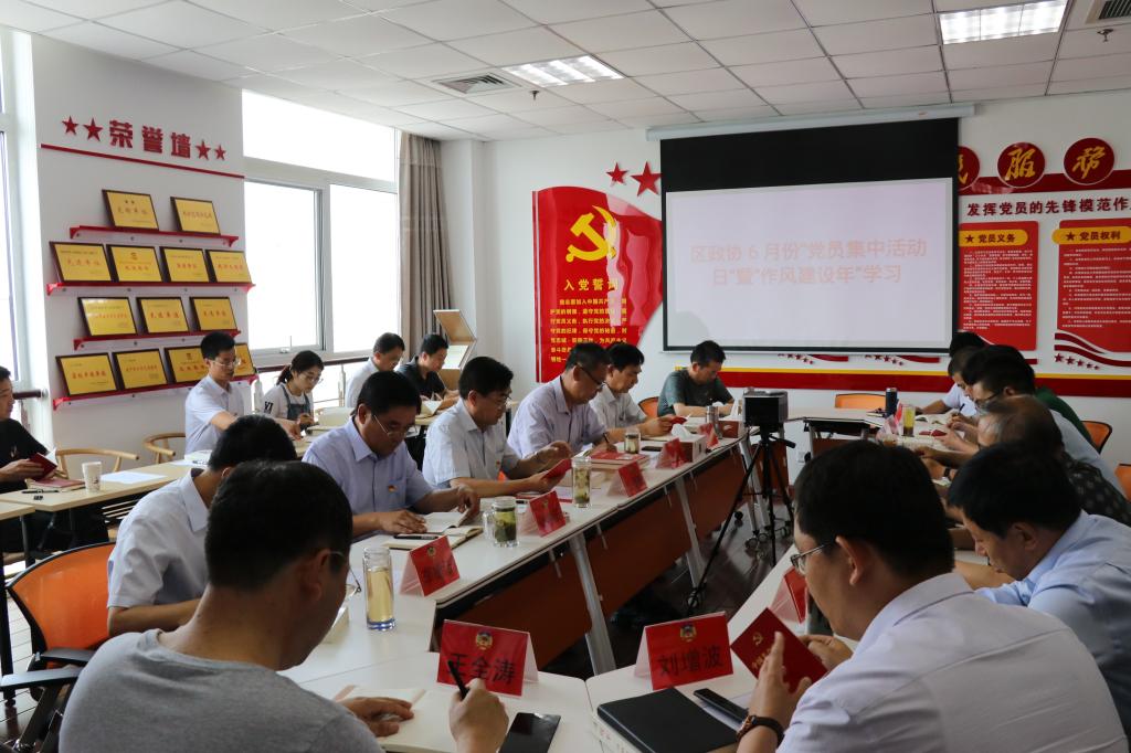 6月8日,区政协机关第二党支部组织开展了“党员集中活动日”暨“作风建设年”集中学习。全体党员重温入党誓词和党章,过“政治生日”的4名党员同志依次讲述入党故事,回忆入党初心,区政协主席张葆春为他们颁发了特殊的生日贺卡,并赠送红色书籍作为生日礼物。全体党员干部集中学习了《习近平谈治国理政》中的《注重家庭,注重家教,注重家风》,大家深刻感受到,无论时代发生多大变化,无论生活格局发生多大变化,我们都要重视家庭建设,注重家教和家风,发扬光大中华民族传统美德,以良好的家风支撑起社会风气。党支部严格落实“7+X”模式,还组织全体党员干部观看纪录片《大道中国》,很多党员深刻感受到如今幸福生活的来之不易,做为一名基层的共产党员,要更努力的工作,为党旗添彩。